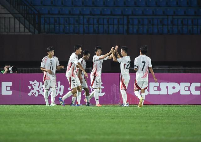 7月4日,日本队球员和田武士(右三)进球后与队友庆祝。新华社记者 潘昱龙 摄随后,帅惟浩多次在日本队门前制造威胁无果,他先是在前场断球后突入禁区,成功晃过门将后,面对空门却错失良机;随后又一脚射门偏出边网。比赛后半段,两队克服湿热天气攻势不减,尽管日本队多次利用角球机会制造威胁,但均被中国队解围,双方握手言和。